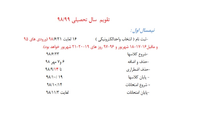تقویم دانشگاهی تقویم سالتحصیلی 99-98 کد خبر : 61165 کپی کلمات کلیدی : تقویم دانشگاه تقویم آموزشی تقویم دانشگاهی 99-98
