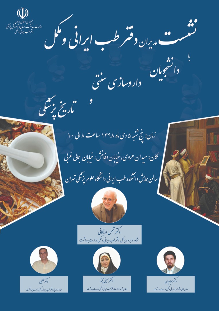 اطلاعیه نشست نشست مدیران دفتر طب ایرانی با دانشجویان رشته داروسازی سنتی و تاریخ پزشکی کد خبر : 61182 کپی کلمات کلیدی : طب سنتی اطلاعیه نشست
