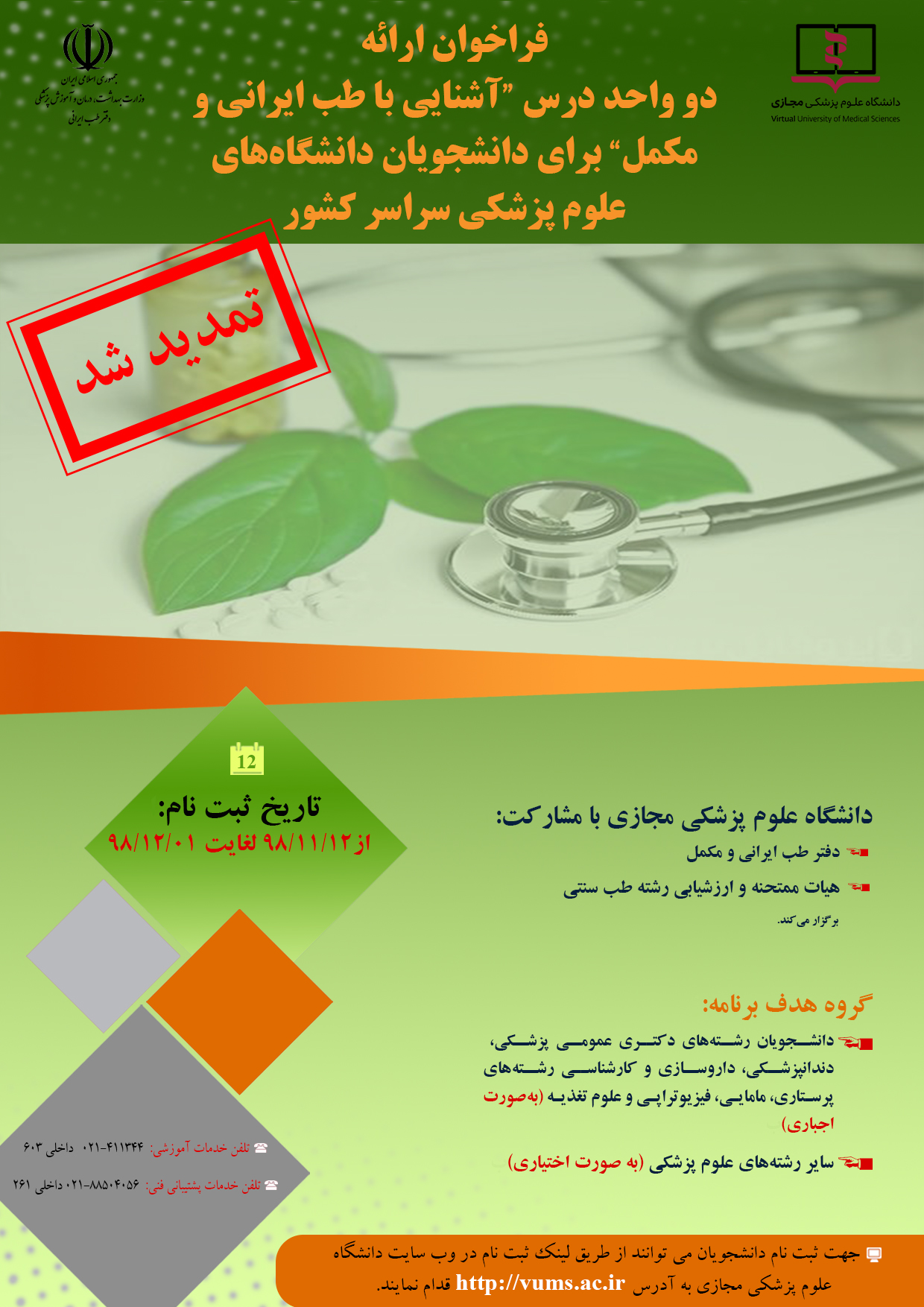 تاریخ انتشار : یکشنبه ۲۷ بهمن ۱۳۹۸ تعداد بازدید کنندگان خبر : 91 زمان مطالعه : 0 دقیقه فراخوان فراخوان طب ایرانی کد خبر : 61195 کپی کلمات کلیدی : فراخوان طب ایرانی دانشگاه مجازی ارسال نظر ثبت