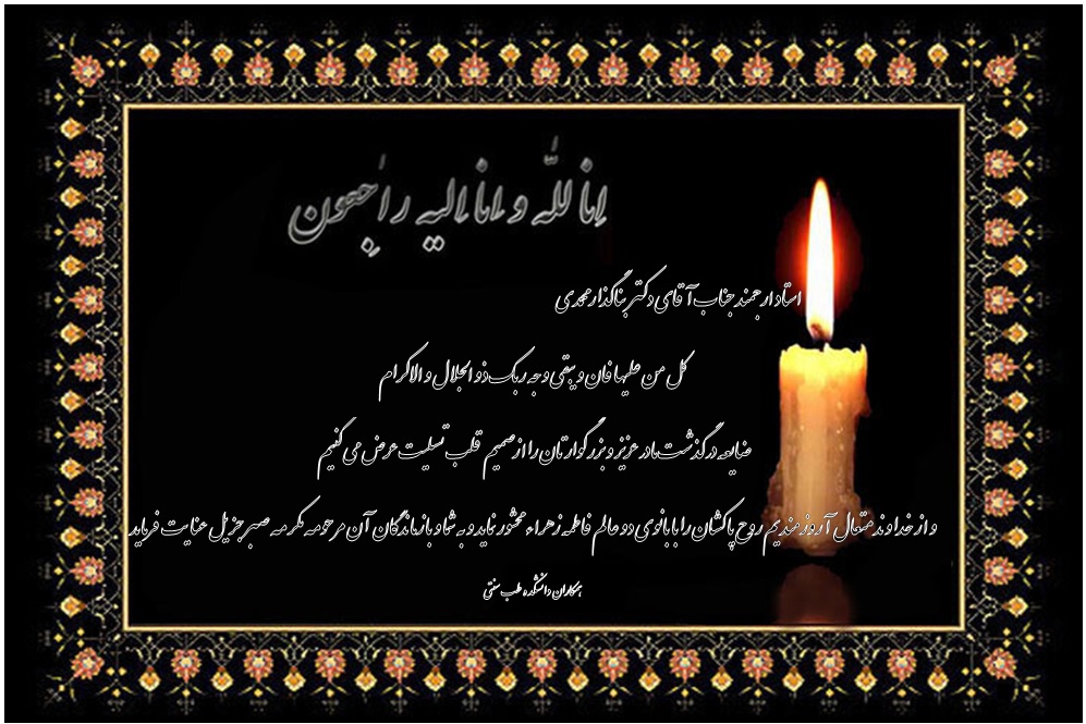 تسلیت ابراز همدردی و عرض تسلیت همکاران و دانشجویان کد خبر : 61323 کپی کلمات کلیدی : مراسم ترحیم درگذشت والده مکرمه دکتر بناگذار