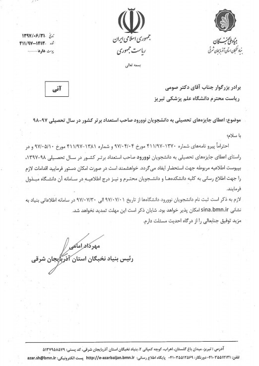 اعطاي تسهیالت دانشجویی بنیاد ملی نخبگان به دانشجویان نوورود